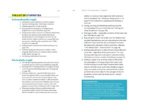 CHAPTER 18: Stupid things to do in the Gulf and the desert; THE LIST OF STUPIDITIES; Extraordinarily stupid; Particularly stupid; THE LIST OF DESERT STUPIDITIES; Acclimatisation; Heat stroke and heat exhaustion.